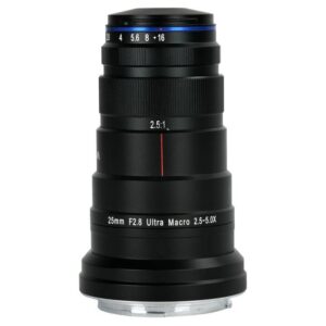 Der Vergrößerungsmaßstab reicht von 2,5:1 bis 5:1 und ermöglicht damit dem Makro-Fotografen unterschiedlich kleine Objekte formatfüllend abzubilden.
